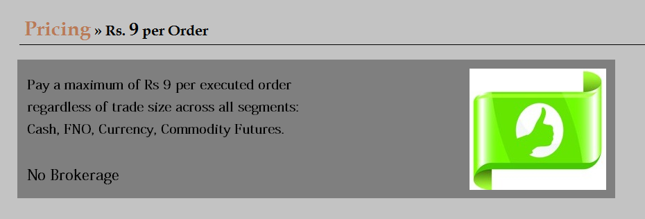You can now trade Flat rate per order no size limit Rs 9 Per executed order or 0.01 (whichever is lower)
